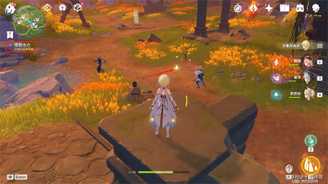 通过传送锚点直接来到轻策庄附近,找到村长若心,询问小六的位置,才发现小六竟然独自出门前往璃月港找父亲嘉义了。