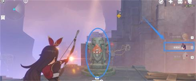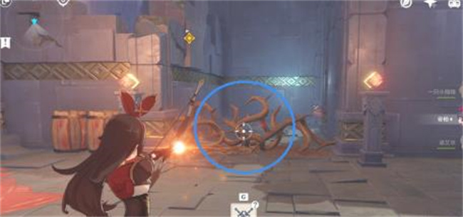 ⑥ 然后切换成安柏 瞄准路上的荆棘 按r键射击