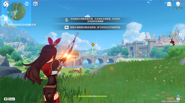 ③ 使用安柏消灭空中的史莱姆(按弓箭瞄准键或长按普攻键开启瞄准射击状态)