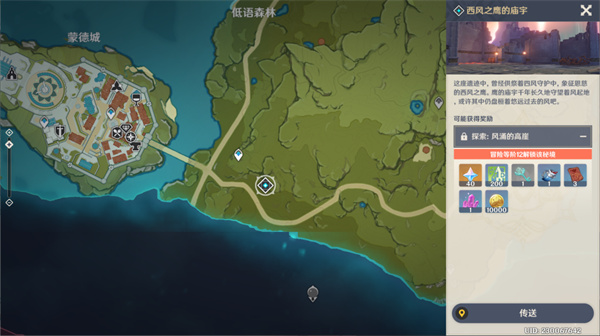 ① 前往蒙德(跟随左上角地图提示前进,期间可以看到风魔龙从头顶飞过)