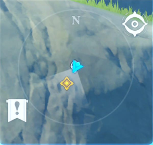 ① 跟随派蒙(观察屏幕左上角,金色标记是派蒙的位置)↑