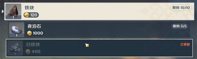 ③ [夜泊石] 价格:1000摩拉 限购量:5