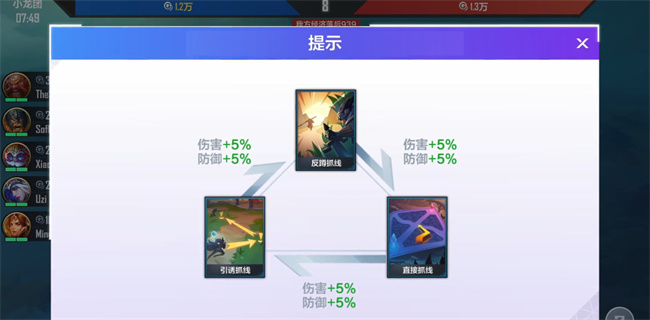 克制关系:直接抓线→引诱抓线→反蹲抓线→直接抓线,成功克制即可提升战斗属性。