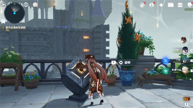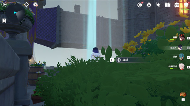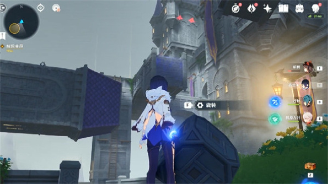 1、在如图所示的位置可以看到一个旋转机关和幽邃鸦眼机关。不要转动旋转机关!直接用鸦眼!