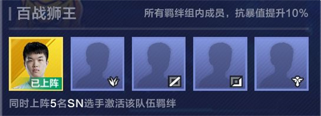 效果:所有羁绊组内成员,抗暴值提升10%