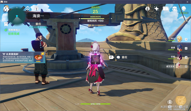 1、首先前往无相岩最高山处边上北斗的船上,找NPC重佐接取任务,可以飞过去。