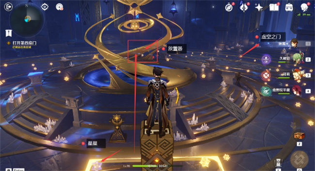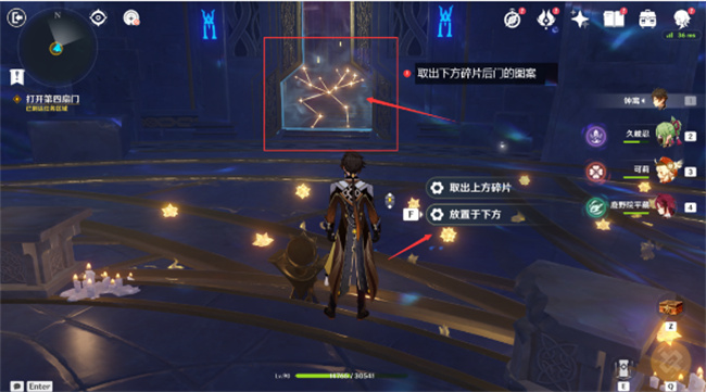 1、进入到秘境三后,背对虚空之门往右边走,找到放置器,在上方放入图中的碎片。