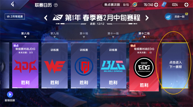 3、【赛程场数】:每个赛程都有12场比赛(tips:每场比赛首通都会有额外奖励)