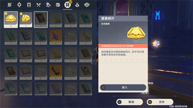 4、回到星星位置的放置器,上方放入图示碎片