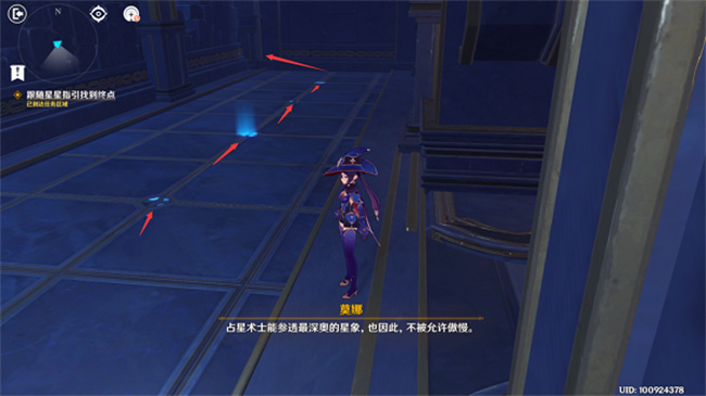 13、过完剧情后,触摸旁边的占卜球,进入副本后往右,跟随地上的星光指引走,直到遇上地上的星星,改为跟随星星走,注意不要跟丢。