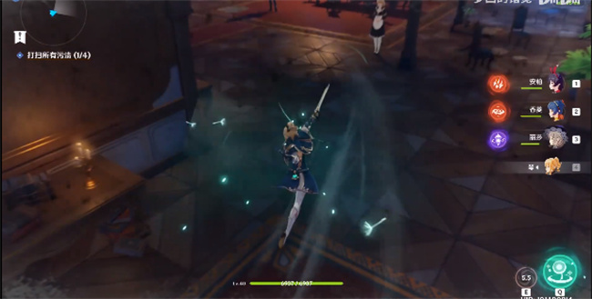 打扫技巧:用风系角色和水系都可以,风吹灰,水清洗,打开元素视野,清除四处污渍即可。