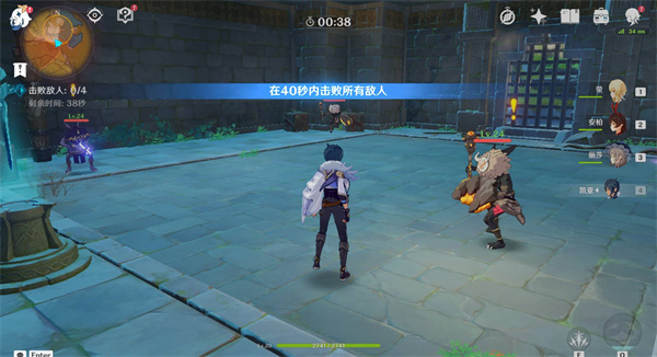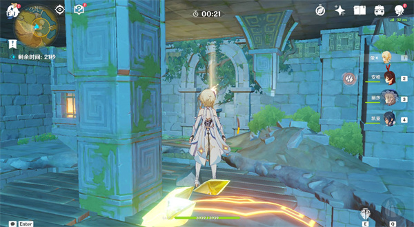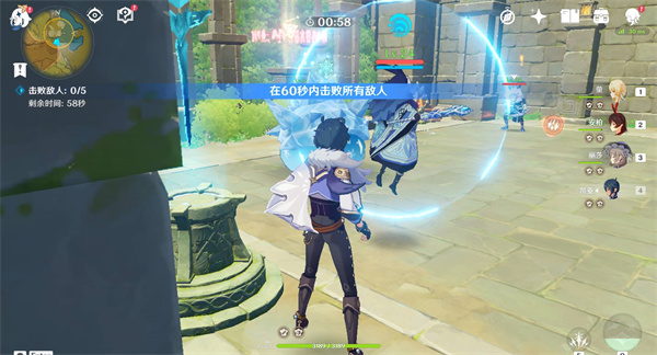 11、开启挑战后会出现水、冰两种属性的怪物,伤害偏低的玩家最好有限处理水属性的怪物,否则会因为元素反应频繁进入冰冻状态,会浪费时间,使得无法在规定时间内击败怪物。伤害足够的玩家也可以直接不管不顾的全部秒杀怪物即可。
