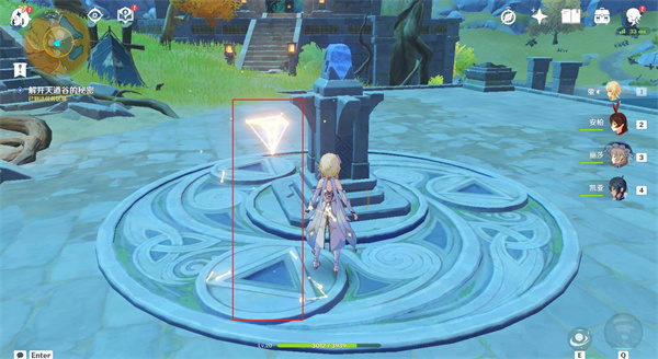 15、靠近石柱后发光体会自动填充进入地上的石板内,此时石板亮起三分之一的区域。