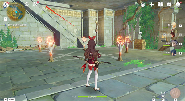 18、各选一个点亮后因为机关的设定,会一次性亮起六个火把,此时这一层解密完成,获取宝箱后沿着旁边的楼梯前往第二层。