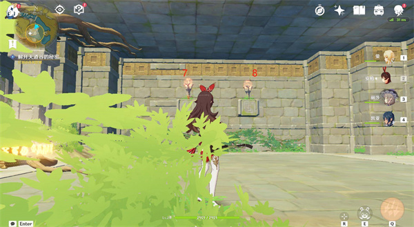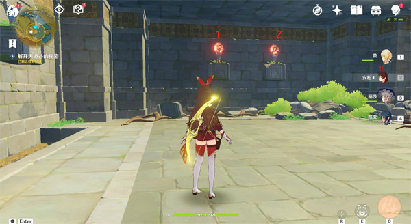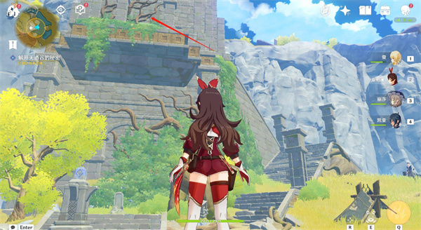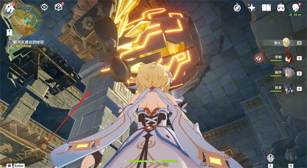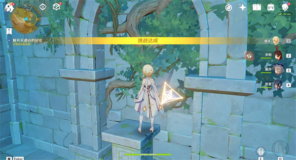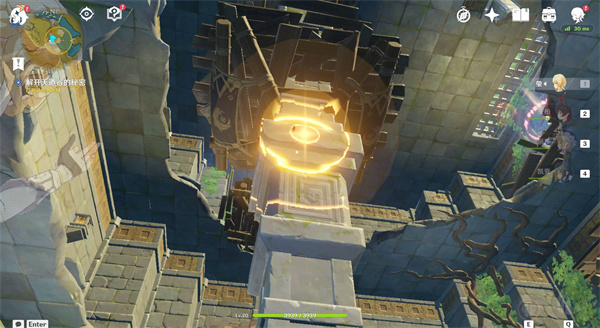 32、这一座石塔只有一个挑战,开启后需要在60秒内爬到高处拿到发光体。因不是每个玩家都有温迪或者万叶,所以这里推荐玩家们掏出岩主,使用岩主就很容易爬上去了。