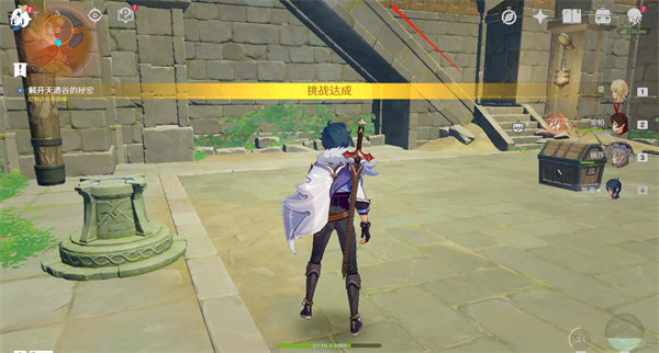 9、击败怪物后挑战达成,获取宝箱后继续沿着楼梯往上层走。