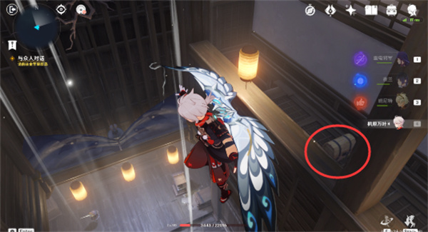 继续前进,在机关旁边的屏障里面,可以借助旁边的风场进入。