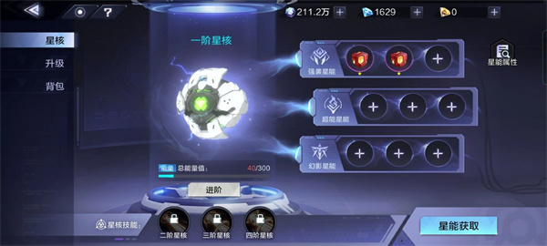 在时空猎人3游戏中,当玩家通过通关第八章后开启星核系统,星核的品质由低到高分别是紫,橙,金。星核可以镶嵌不同职业的星能后能为幻影,强袭,超能三个职业提供属性的加成,消耗星核升级晶石,能提升星核的等级,消耗同名星核能为星核升星,当星核进阶到一定程度是开启星核技能。