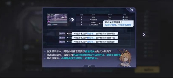 在无限试炼中,同组的指挥官需要以竞速闯关的形式一较高下。挑战进行期间,指挥官可挑战本轮刷出的关卡获得评分,提升小组排名。挑战结束后,小组排名位于加分区,可增加积分。累计积分可晋升至更高阶的战区。每轮挑战结束后,将根据指挥官的积分变动调整玩家所在战区。