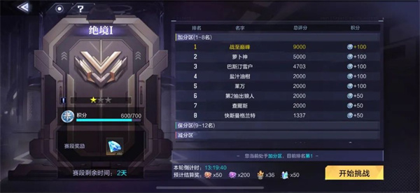 3、赛段进行期间,至少参与任意一轮挑战,赛段结束时才能获得赛段结算奖励。