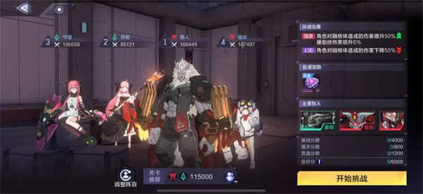 每天的挑战区域,会有一些属性克制,比如今天可能是上阵强袭猎人伤害提升50%,出阵幻影猎人则伤害降低50%,到了明天刷新挑战,则可能变成上阵超能猎人伤害提升,上阵强袭猎人伤害下降。