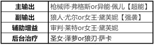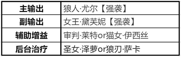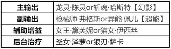 主副输出确保是强袭的,剩下的辅助治疗猎人可以考虑使用其他职业的,重点是像猫女和审判,甚至是圣女这些,都是能在后台为上阵的猎人提供辅助或者伤害增益的支持效果的 。