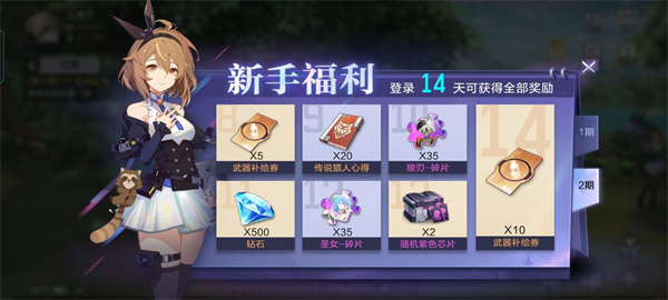 共分为2期(14天),第一期最终奖励为招募卷x10。第二期最终奖励为武器补给卷x10。