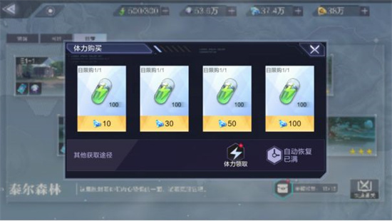 (tips:体力可以通过等待恢复,体力购买或者每天的体力领取来获取)