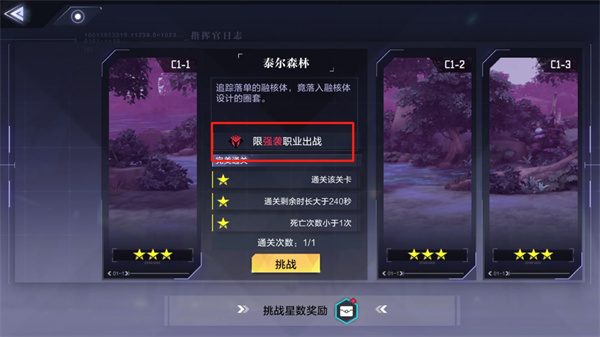 每个大章节有三个小节,三个小节分别限制强袭、幻影以及超能角色的猎人出战。