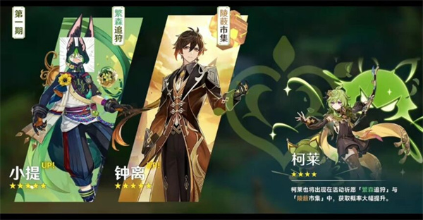 (一)上半:提纳里+钟离(+四星柯莱),预计持续21天。