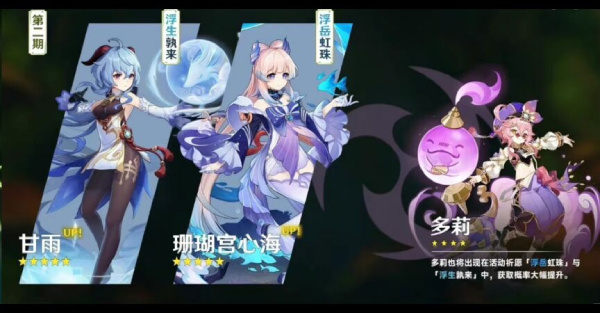 (二)下半:甘雨+珊瑚宫心海(+四星多莉),预计持续14天。