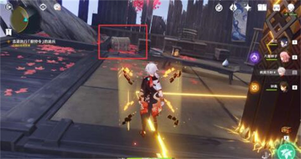 旅行者向前击败追兵,即可看到1个宝箱,在必经之路。