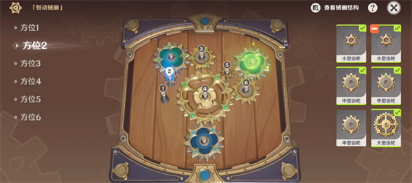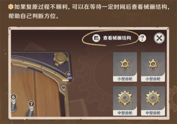 5、如果复原过程不顺利,那么旅行者们可以在等待一定时间过后,在右上角能够去[查看械画结构],帮助自己判断如何操作。