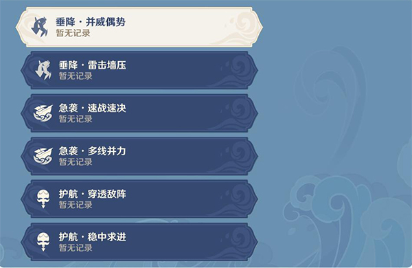 [追想练行]挑战包含3个主题:垂降、急袭和护航。每个主题分别有2关挑战,活动前6天每天将解锁一关挑战。