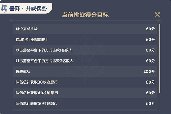 [垂降·并威偶势]当前挑战得分目标