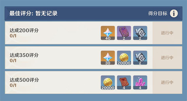 在活动期间在各挑战达成一定的得分,可获取原石、大英雄的经验、天赋培养素材、摩拉等奖励。