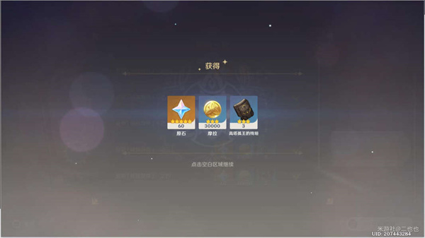 2、奖励:原石*60、摩拉*30000、高塔孤王的残垣*3