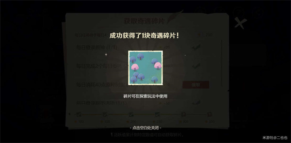 1、成功获得第一块奇遇碎片