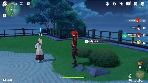 1、在稻妻鸣神岛神里屋敷区域,与NPC古田对话后开启任务《异邦人喧哗旅!!》