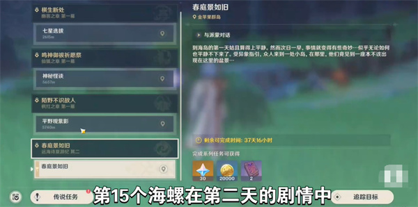 在原神游戏中在第二天开放的任务[春庭景如旧]其三里面,很多旅行者不知道海螺位置及怎么获得,红手指小编整理分享原神春庭景如旧其三海螺位置在哪,怎么获得: