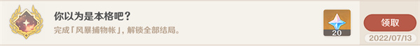 2、这个成就我们能够去得到20原石。
