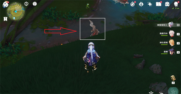 来到二净甸神像右上角如图位置,找到棘冠鳄,按“Z”进行拍摄。