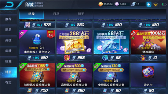任务分为新手任务和每日任务,每一个新手加入都会有新手任务,可以获得免费英雄皮肤,并且有大量英雄和钻石,只要按要求完成即可领取;每日任务则是需要完成每天的活跃度要求,达到一定的活跃度可以开启宝箱,每天150活跃度即可开启全部宝箱,开启宝箱除了获取金币和铭文碎片外,有一定的几率获得钻石。