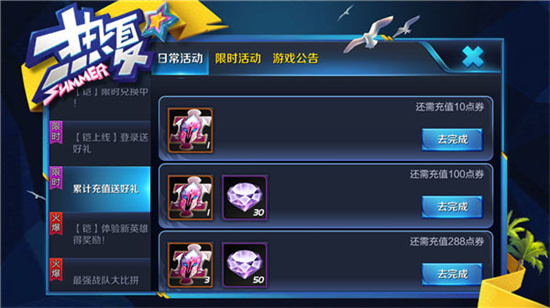 每天登陆游戏都会有个签到功能,签到可以获取各种游戏道具,并且有一定数量的钻石,这里要注意坚持签到,不然就错过钻石了。