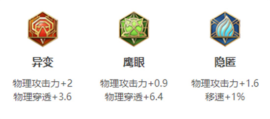 ② 【异变、鹰眼、隐匿】这套铭文为关羽增加了许多攻击,刀刀致命。