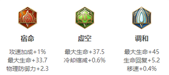 使用【宿命、虚空、调和】这套铭文可以给盘古增加血量和10%的攻速,因为盘古的大招需要蓄力时间,所以铭文中加的血量可以使盘古在蓄力期间不被秒;
