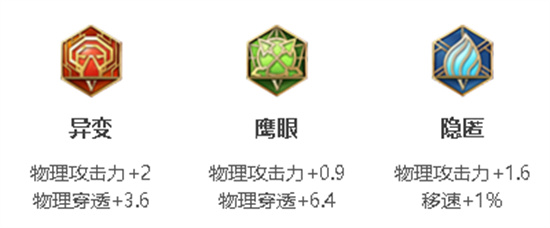 花木兰可以使用【异变 、鹰眼 、隐匿】这一套铭文,可以为其增加很多物理伤害,还可以提升10%的 移速。