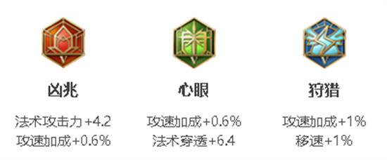 露娜可以使用【凶兆 、心眼 、狩猎】这一套铭文,可以为其增加很多法术伤害,还可以提升10%的移速和22%的攻速。