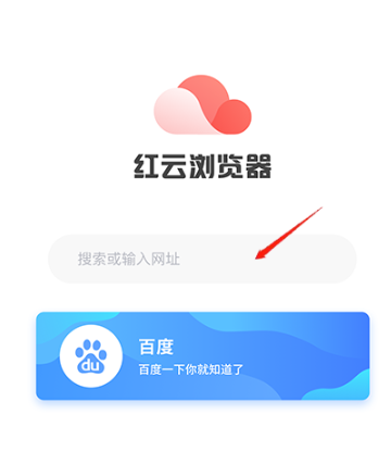 3.红云浏览器APP即红手指ios下载安装完成之后,点击打开红云浏览器APP进入主页面,在搜索框输入“红手指/hsz/Hsz/云手机/hongshouzhi”进入红手指。