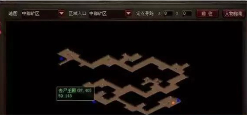 到达中部矿区,点开大地图选择尸王殿(坐标97、40),如图三。